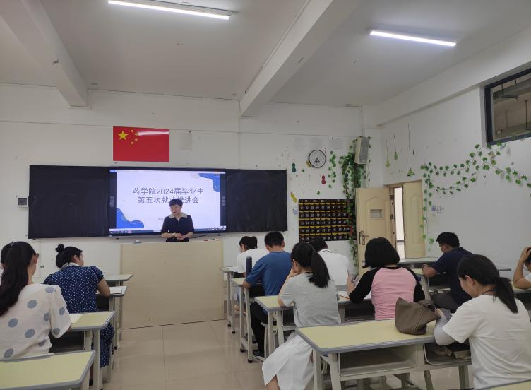 药学院2024届毕业生第五次就业推进会于5月30日在教学楼北208召开。药学院党总支书记张郴、副书记孙雨诗及2024届毕业班班主任、辅导员参加了本次会议,会议由药学院党总支副书记孙雨诗主持。