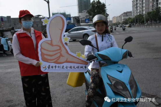 扎实推进蒙自市创建全国文明城市建设有序开展,积极广泛引导群众参与新时代文明实践志愿服务,提升市民对创建全国文明城市的理解、支持、参与并共同建设文明蒙自。2020年5月23日上午,我系部分党员志愿者分别出发春熙苑和杏林苑,开展了“蒙自因我而文明——礼让斑马线 文明我点赞”和“蒙自市创建全国文明城市市民应知应会”主题志愿活动。