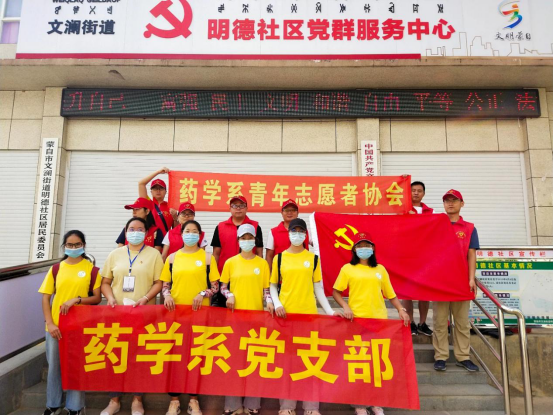 为进一步发挥党建引领作用,提高药学系党支部的凝聚力、战斗力,助力蒙自市创建全国文明城市,我系党支部充分发挥党建带群建功能,以党建设带领药学系工会小组、药学系团委、药学系青年志愿者协会于2020年6月13日上午9点到蒙自市春熙苑小区进一步推进“蒙自市创建全国文明城市市民应知应会”入户宣传活动。