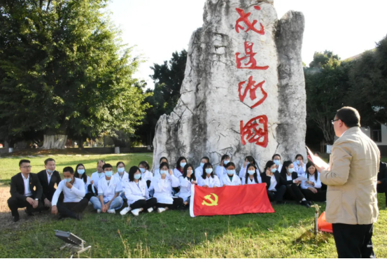 参观结束后,药学系党支部给殷春雁、刘超等5名党员过政治生日,最后药学系党支部书记阳敬带领全体人员学习了十九届五中全会精神。