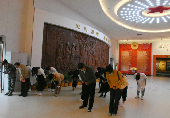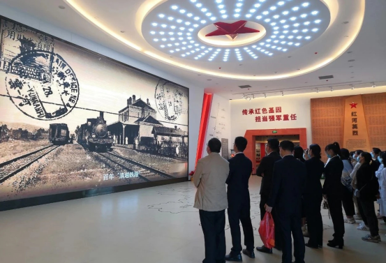 在工作人员的引导下,全体人员首先参观了军史长廊,军史长廊分为军史人格、伟大征程、不朽丰碑、长军伟业四部分;进入军史馆内后,全体人员跟随讲解员的脚步深入学习了印象红河、烽火红河、革命红河、新生红河、浴血红河、精兵红河、强军红河七部分革命军史。参观结束时全体人员面对英烈墙,瞻仰红河州英烈,并对英烈墙进行三鞠躬。
