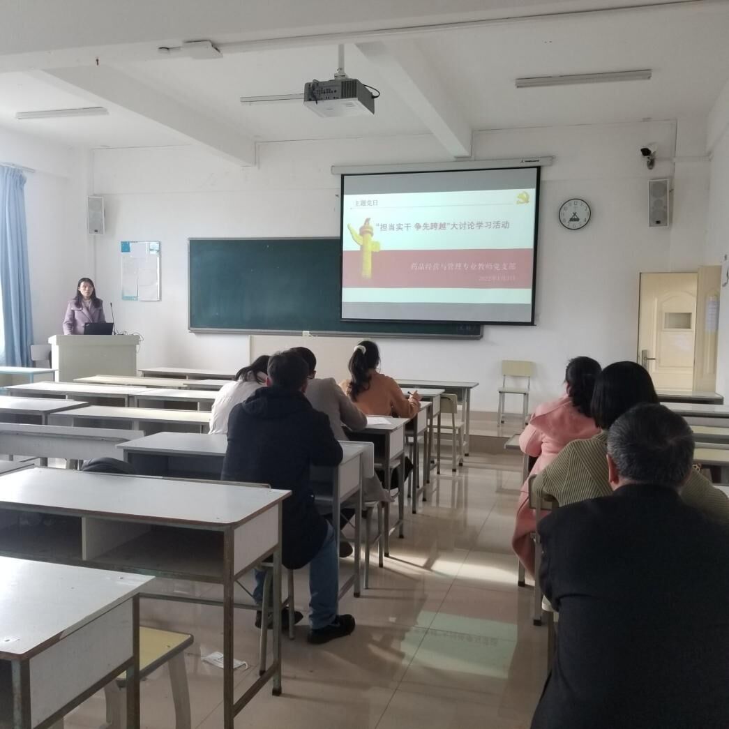 自2021年12月21日学院召开“担当实干,争先跨越”大讨论活动动员部署以来,迅速掀起学习讨论热潮。2022年1月2日药品经营与管理专业教师党支部开展“担当实干 争先跨越”大讨论活动学习讨论会,本次讨论会由党支部书记刘玉红主持。
