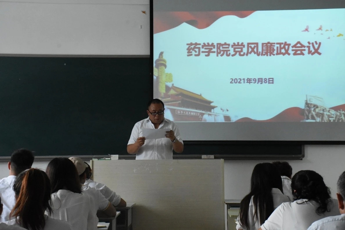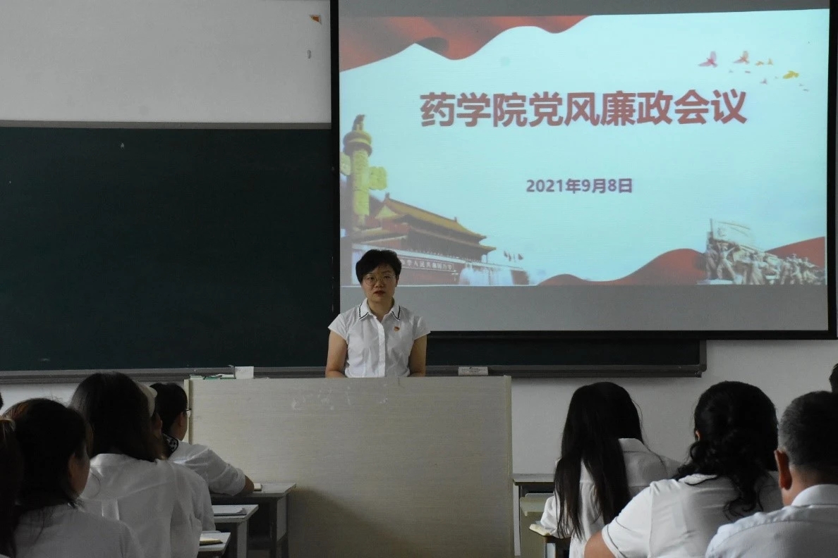 为深入实施加强党风廉政建设,推进中国特色社会主义事业,坚决遏制各种腐败现象,将党风廉政贯穿于校园师德师风建设,推动教育事业高质量发展,2021年9月8日在教学楼南204,药学院开展党风廉政专题会议,会议由药学院副院长阳敬主持。