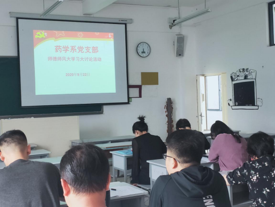 为落实《中共云南省委教育工作领导小组秘书组关于印发云南省教育系统开展“守初心、担使命,学榜样、创一流”主题实践活动方案的通知》、《中共红河州委教育工作领导小组秘书组关于印发红河州教育系统开展“守初心、担使命,学榜样、创一流”主题实践活动方案的通知》以及《中共红河卫生职业学院委员会开展“守初心、担使命,学榜样、创一流”主题实践活动方案》等文件精神,药学系党支部于2020年9月22日在教学楼南203开展师德师风大学习大讨论活动。