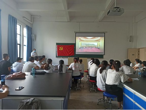2020年6月17日下午17:00,药学系全体党员以及4名党员发展对象在综合实训楼105教室举行第二季度第二次党课以及6月份主题党日活动。