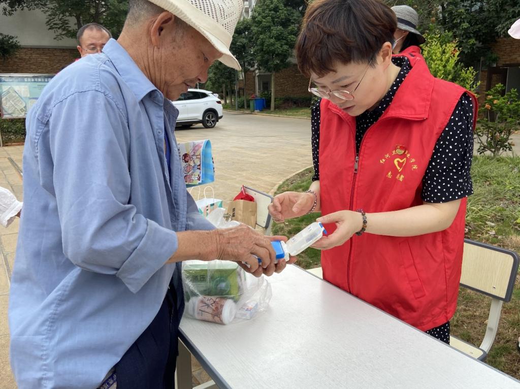 活动现场,一听说红河卫生职业学院的志愿者们来了,村民们纷纷围了上来,热情的与在场的志愿者们交流健康经验、养生心得;有的村民则拿出早已准备好的家庭用药,请药学专业教师给予指导合理用药。
