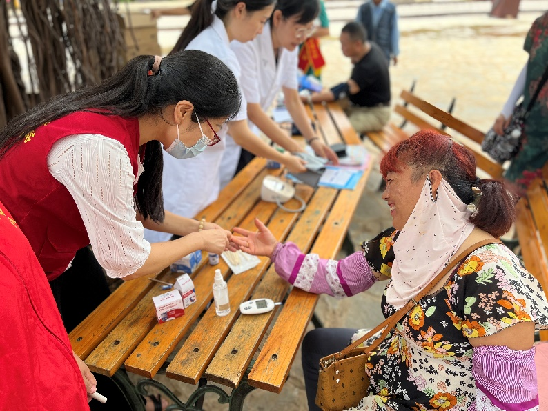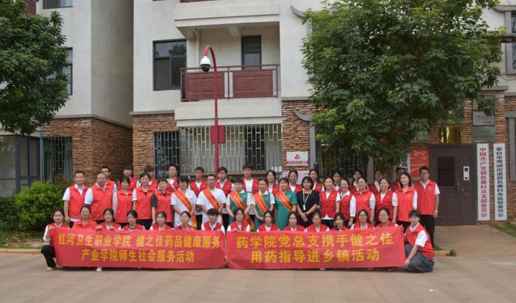 2023年7月3日,药学院党总支组织开展了“七一”系列主题党日活动,活动以党建带团建、党建带群建,携手健之佳“用药指导进乡镇”社会服务的形式开展。本次活动药学院党总支充分发挥党建引领群团建作用和党建引领专业建设的优势,带领各教研室专任教师和药学院团委青年志愿者赴蒙自市碧色寨村开展用药指导、血糖血压检测、健康教育等服务,受到了当地村民及广大社会公众热烈欢迎。