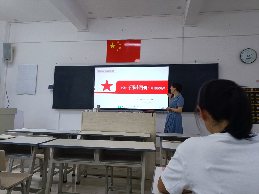 为深入贯彻落实党的二十大精神,持续做好党员教育工作,药学院党总支书记张郴于7 月 6 日为党总支全体党员讲党课,党课题为“践行‘四讲四有’做合格党员”。 本次党课围绕“四讲四有详细阐述、怎样做到四讲四有、总书记论如何做一个合格党员” 三个方面深入浅出介绍了四讲四有要求什么,即:讲政治、有信念,讲规矩、有纪律,讲道 德、有品行,讲奉献、有作为。