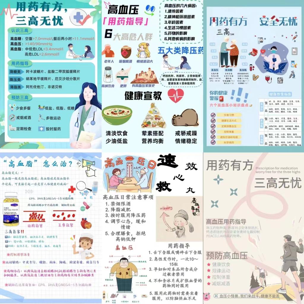 为了进一步提升专业建设与党团活动的有机结合,更好地将药学专业知识和社团活动融合起来,提升学生创新思维与实践能力。药学宣讲团在药学专业教师党支部的带领下,举办了职教月系列活动——“用药有方,三高无忧”慢性病(三高)用药指导电子海报设计大赛。
