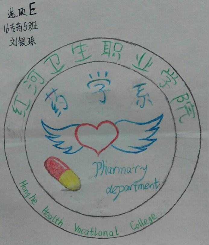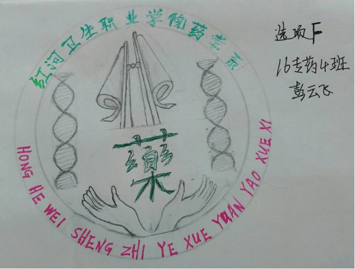 为了充分展示红河卫生职业学院药学系文化和积极向上的精神面貌,体现团体精神和不断超越自我的理念,彰显我系团结拼搏、与时俱进精神面貌,药学系团学联合会在系部领导老师的支持下,组织全系的学生进行了一次系徽设计征集活动,活动中同学们将青春的热情与创意发挥得淋漓尽致,在同学们的积极参与下此次系徽设计活动共收到35份作品,经历了药学系团学联合筛选后,7份优秀的作品通过药学系师生于QQ投票平台投票后,其中一幅来自16专药1班,7501宿舍的马李艳、吕露、白梦圆、周建芳等4位同学一起创作的作品让人眼前一亮,将药学系的专业特色更好的表达出来,以138票最终成为了药学系的系徽。此次参与的作品,有的是一个人独立完成的、有的是宿舍的小伙伴们一起努力的成果、也有的作品是在班里的所以同学一起的创意,每份作品都赋予了创作者对药学系这个专业的认识,不得不说每个作品都非常吸引人,每位参与的同学都非常优秀。