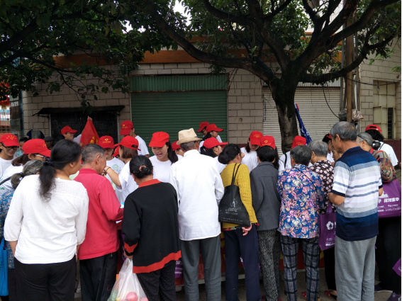 志愿者对老百姓进行用药知识普及