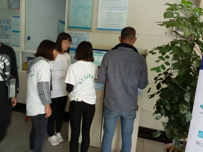 药学系团学联合会的青年志愿者于每周六、周日到红河州第一人民医院进行导医服务,抚平患者急切的心情,伸出援手帮助患者。志愿者们分布在医院的导医台、测血压点、自助取片处、静脉配进中心等地方进行服务。