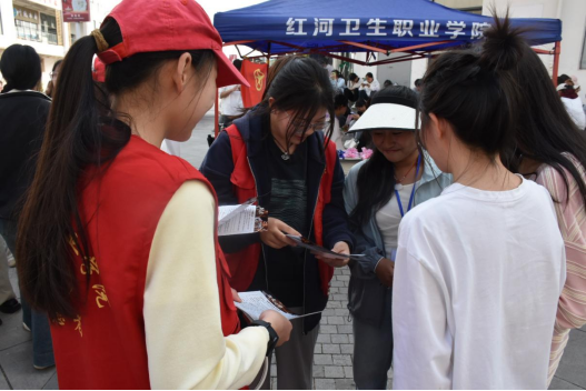 志愿者们在校园内设立咨询点,为校内师生详细讲解常见药食同源食材的功效、食用方法、基础用药知识以及四季养生理念,引导大家树立正确的健康观念,注重饮食调养,追求自然与健康的和谐共生。