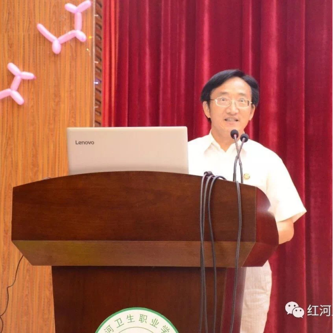 接下来是张郴老师的发言,张郴老师表示药学系自2014年成立以来,在学院领导的关心支持下、在全院师生员工的共同努力下,逐渐发展壮大。由建系之初4个班200多人,发展到17个班近1000人。全系教职工24人增加到36人,毕业生64人增加到157人,就业率达到100%。最后,张老师代表全体教师祝愿药学系2018届所有毕业生能够在未来遇见更好的自己。
