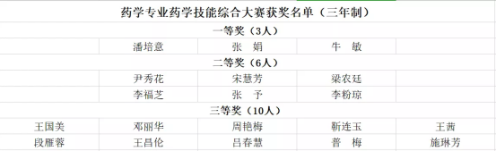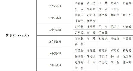 在2020年药学、中药学、药品经营与管理专业实训技能大赛中,每个参赛选手们表现出了高度的积极性,较强的操作能力,经过指导教师们的悉心指导,共产生优秀学生73人,优秀指导教师11人。现对获奖名单进行公布: