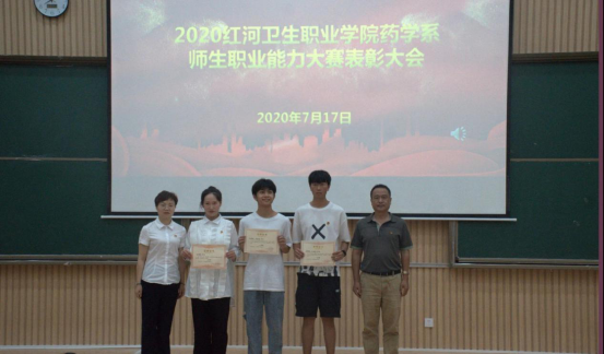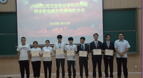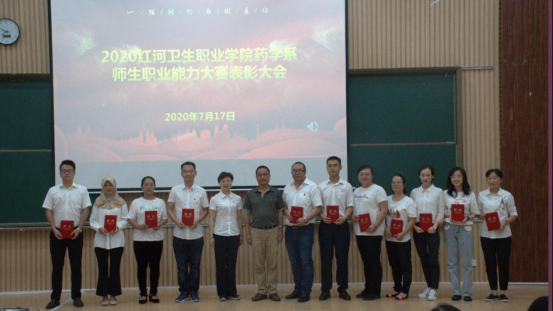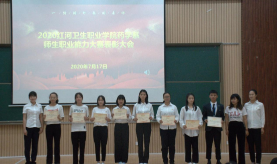 为了深化职业教育教学改革,促进产教融合、提高人才培养质量,推动药学系职业教育事业发展,2020年上半年以来,药学系分别举行了一序列师生职业能力大赛,并于7月17日在学校教学楼阶梯教室举行了表彰大会。