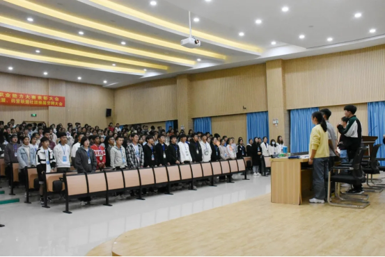 会议尾声由学生会文体部部长彭学华带领全体参会人员歌唱《义勇军进行曲》,在嘹亮的歌声中结束了此次会议。