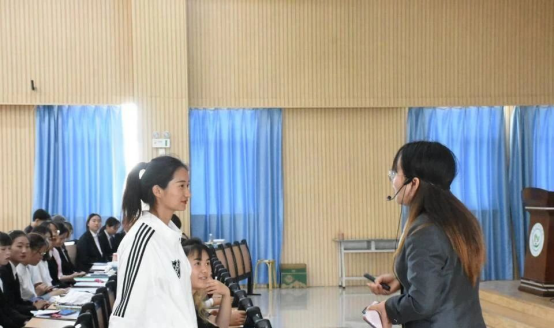 会议刚开始由药学院院长张郴老师讲话:“到企业学习的目的是增强同学们实践技能,提前感受岗位,为未来的就业方向提供正确的选择、明确的方向,最后,预祝本次实习宣讲会成功。”