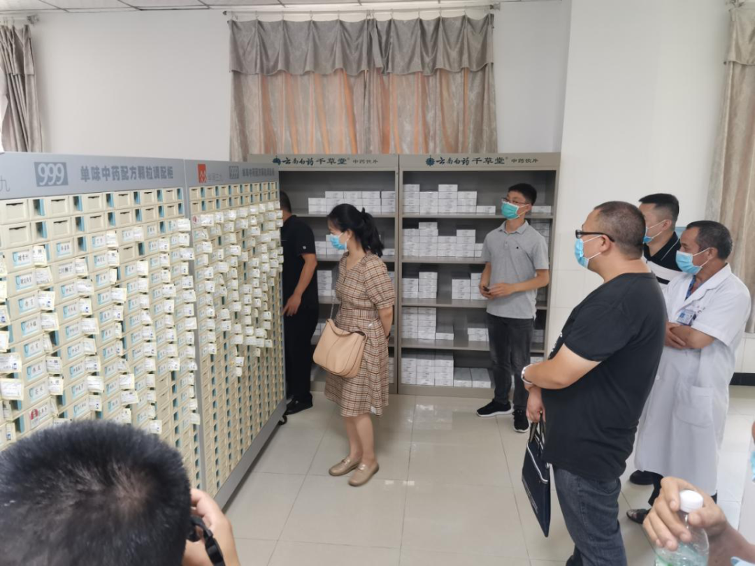 第二阶段在河口县第一人民医院进行调研,首先在河口县卫健局副局长易如春的带领下参观了医院的药房、中药房、药房仓库、静配中心,药剂科工作人员介绍了科室的发展情况及人才需求情况,并且和老师们深入的交流了药房和仓库在药事管理方面的具体要求。在参观的过程中老师们感受到课堂学习和医院实习的差异,药剂科刘杰主任说道:学生在医院实习得到的知识是全面而且系统的,和学生在学校的学习可以优势互补。
