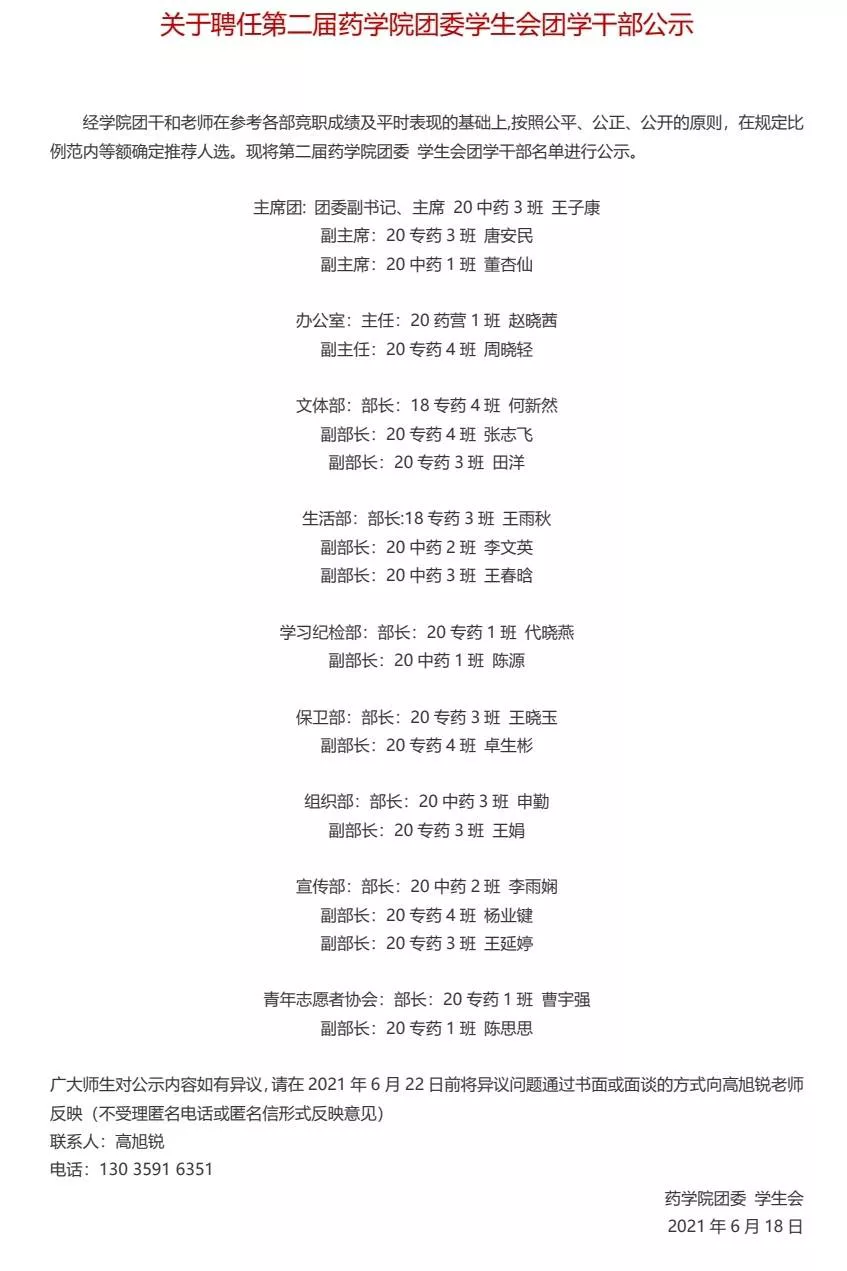 参加本次换届大会的人员有:高旭锐老师、陈润庭老师、保剑老师、欧阳秋雨老师、丁媛媛老师、张大庆老师,以及药学院团委、学生会各部门的部长和副部长。