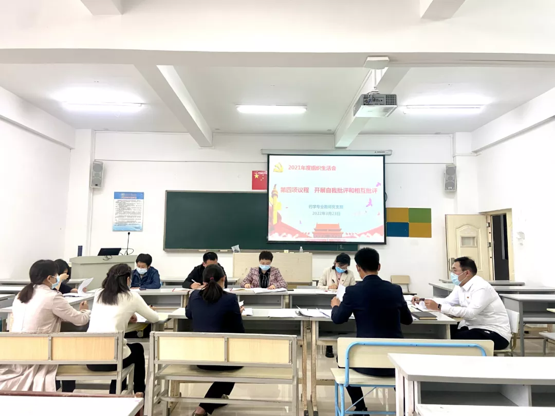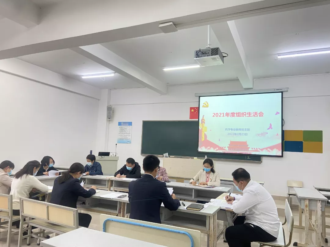 2022年3月23日下午14:30,药学专业教师党支部在教学楼北201召开2021年度组织生活会,同时开展党员民主评议。会议由支部书记张小东同志主持,支部全体党员参加会议,药学院党总支宣传委员皮渤淼同志出席会议。