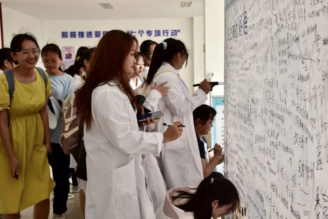 2023年5月25日,药学院在学校教学楼大厅搭建了青春告白墙。给即将离校去实习的同学提供了一个把想说的话通过书写的方式表达出来的平台。他们说:青春是“草长莺飞二月天,拂堤杨柳醉春烟”的美好年华,青春带着“倚门回首,却把青梅嗅”的甜蜜。青春也会走过“雾失楼台,月迷津渡”的困惑,但少年负壮气,奋烈自有时。少年时唤起一天明月,照我满怀冰雪;少年时算我平生肝胆,因人常热,张扬着“大鹏一日同风起,扶摇直上九万里”的义气。因为青春意味着奋发与成长,无论我们行有多远,归来仍是少年。