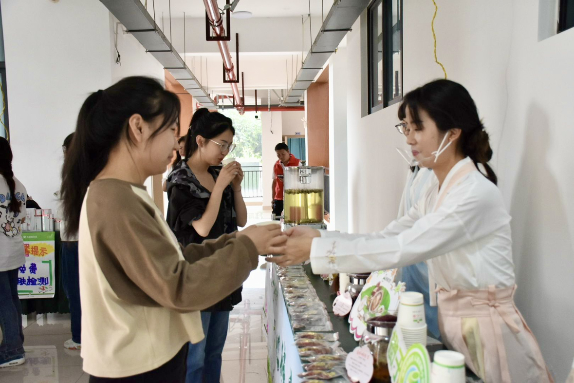 招聘会开始前,一心堂为同学们带来了一系列体验活动:免费皮肤检测、薇诺娜医药护肤品体验、养生茶品鉴以及养生食品试用等。