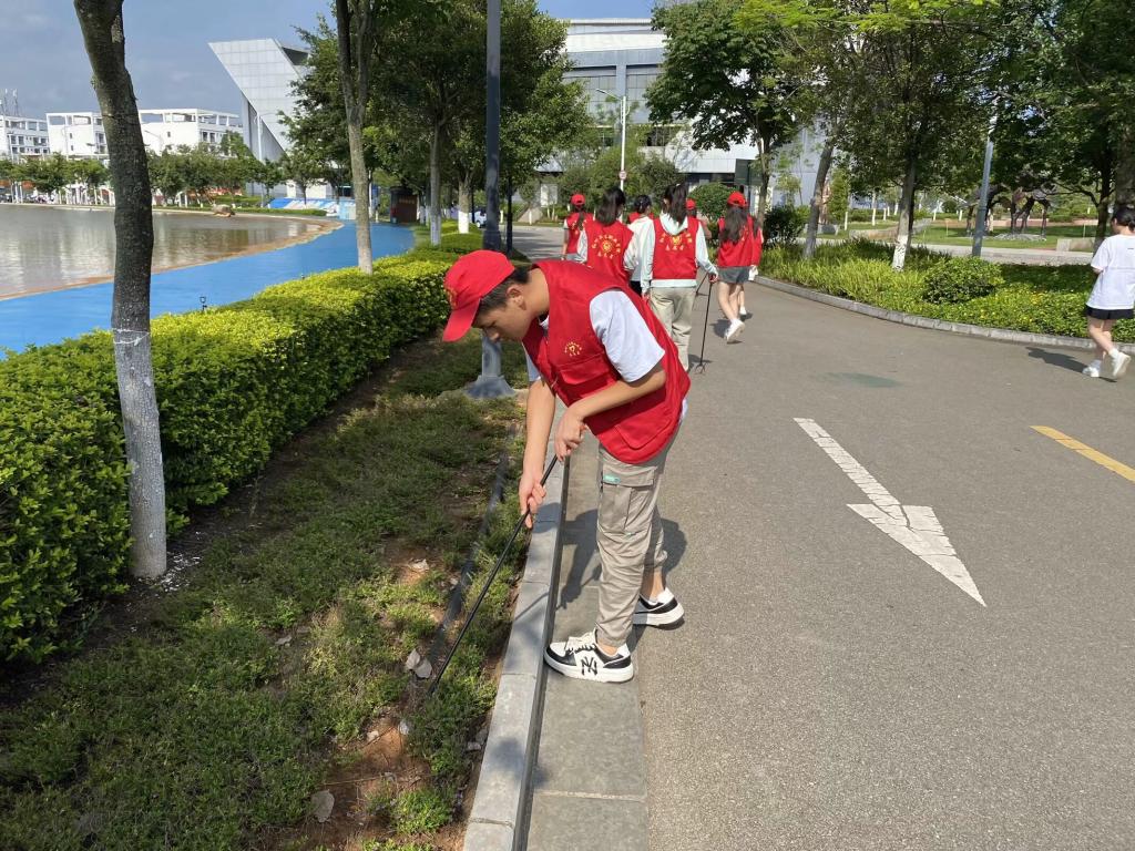 在活动开始前,青协部部长侯思敏同学为各位志愿者交代注意事项并进行工作分配,志愿者们主要负责清扫班级公区及绿化带中的白色垃圾。活动开始后志愿者们手拿钳子,相互协作,有条不紊的校园环境出一份力。同学们的劳动如同一幅生动的画卷,展现出青春的热情和努力的风采。经过志愿者们的努力,校园环境焕然一新。