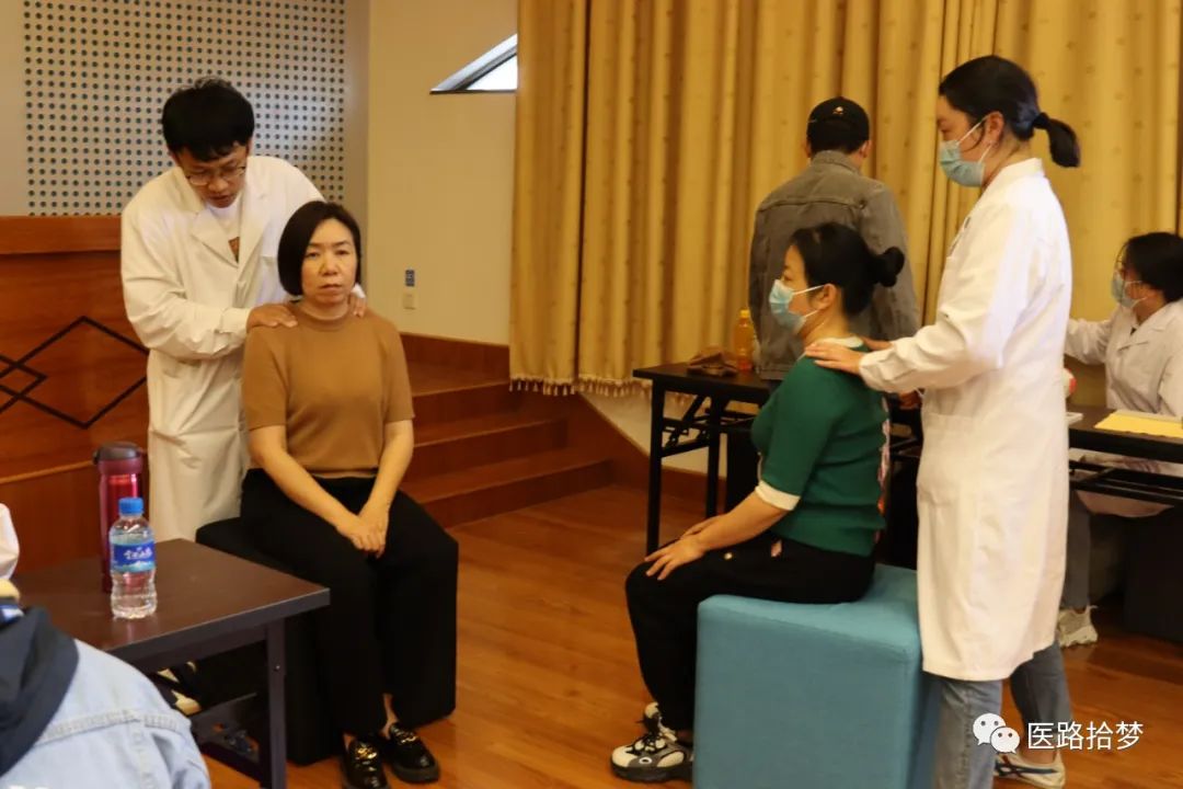 颈椎病和腰椎病是中老年人的常见疾病,活动现场,前来问诊的群众络绎不绝,中医学院院长王丕琦带领中医医护团队,为群众问诊、查体、治疗、推拿,同学们结合自己扎实的专业知识、在校的实训经验和在医院的见习经历,为群众做起推拿,教师们根据群众不同的身体状况指导他们合理用药,积极为群众开展医学常识、健康知识科普宣讲。
