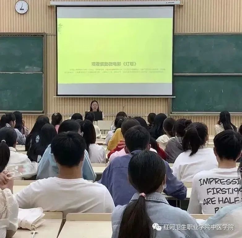 首先,辅导员邱晓雪为在场人员播放了一段微电影——《灯塔》