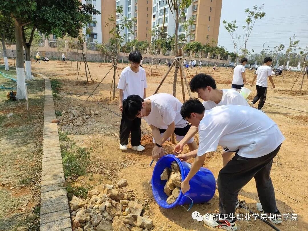 中共中央总书记、国家主席、中央军委主席习近平在全国教育大会上指出:“要在学生中弘扬劳动精神,教育引导学生崇尚劳动、尊重劳动,懂得劳动最光荣、最崇高、最伟大、最美丽的道理,长大后能够辛勤劳动、诚实劳动、创造性劳动。”为全面贯彻党的教育方针,严格落实习近平关于劳动教育的重要指示精神,2023年4月19日,红河卫生职业学院中医学院的200余名志愿者在中医学院团委副书记董超的带领下,在校园分管区域进行了劳动教育实践活动。