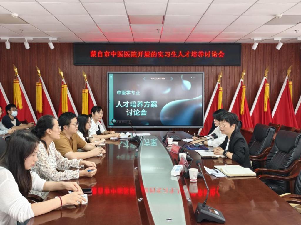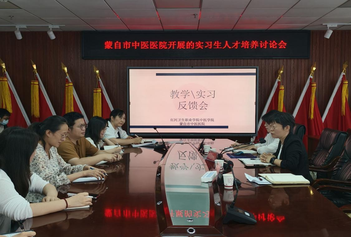 为进一步深化院校合作,提升人才培养质量,5月15日,红河卫生职业学院中医学院与蒙自市中医医院联合召开教学座谈会。中医学院院长王丕琦、副院长韩利等与蒙自市中医医院医务科主任王俊、各临床科室教学秘书及任课教师共同参会,围绕教学与临床实践展开深入交流。