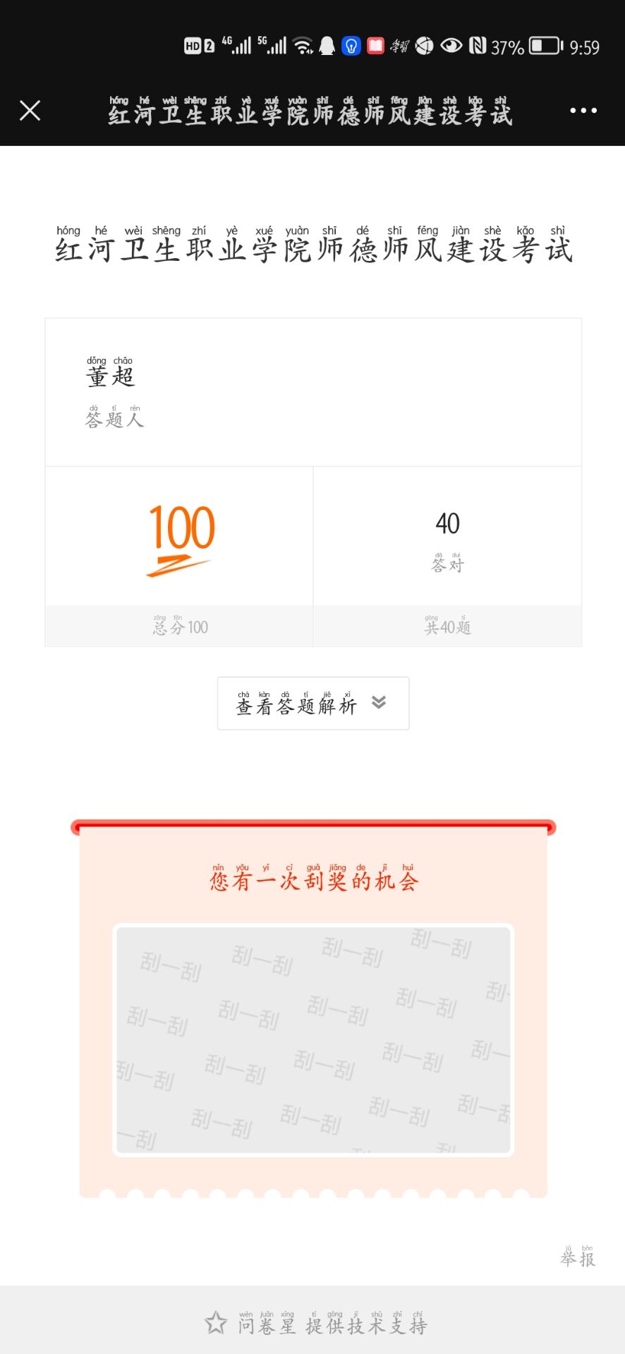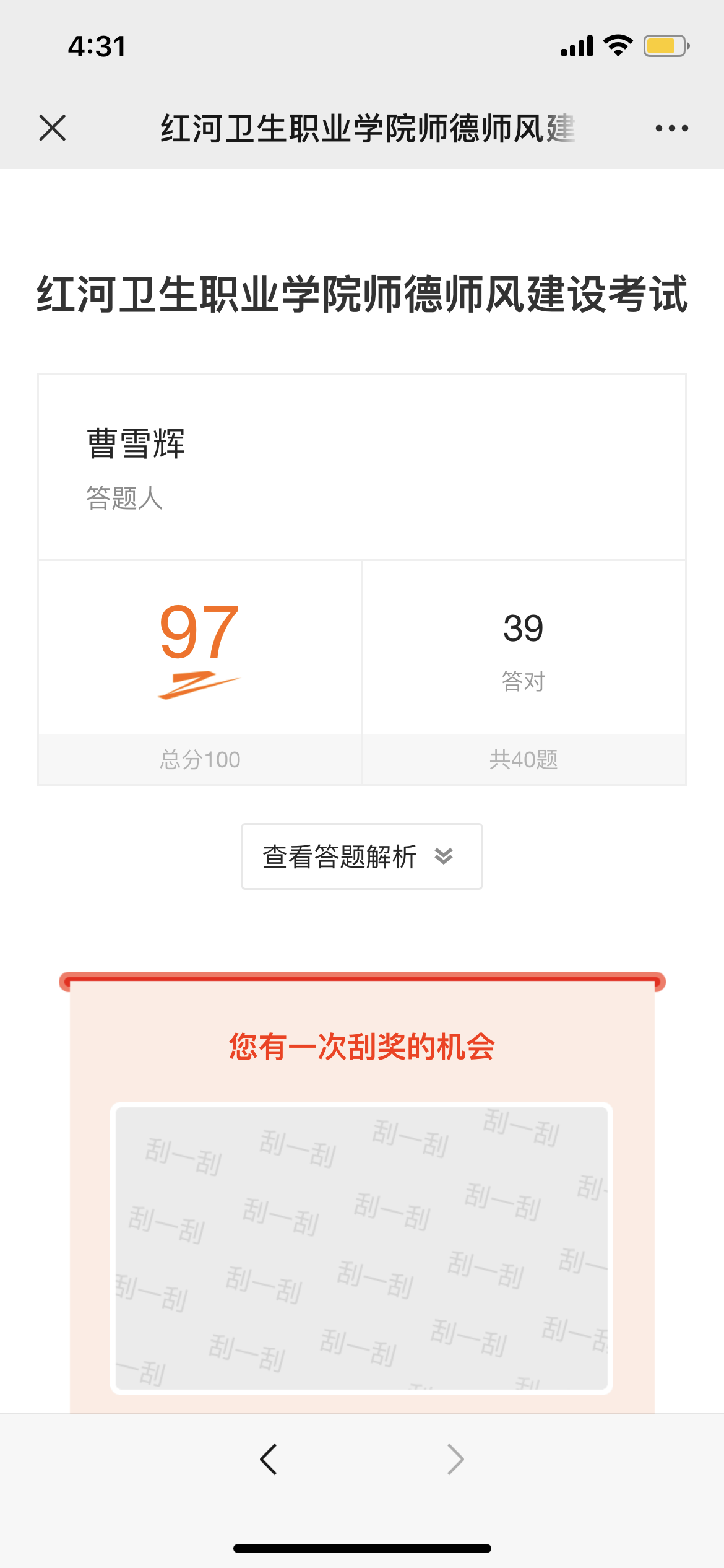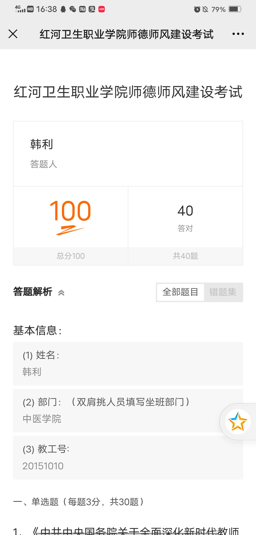 红河卫生职业学院2021年各部门师德师风在线考试分数汇总表