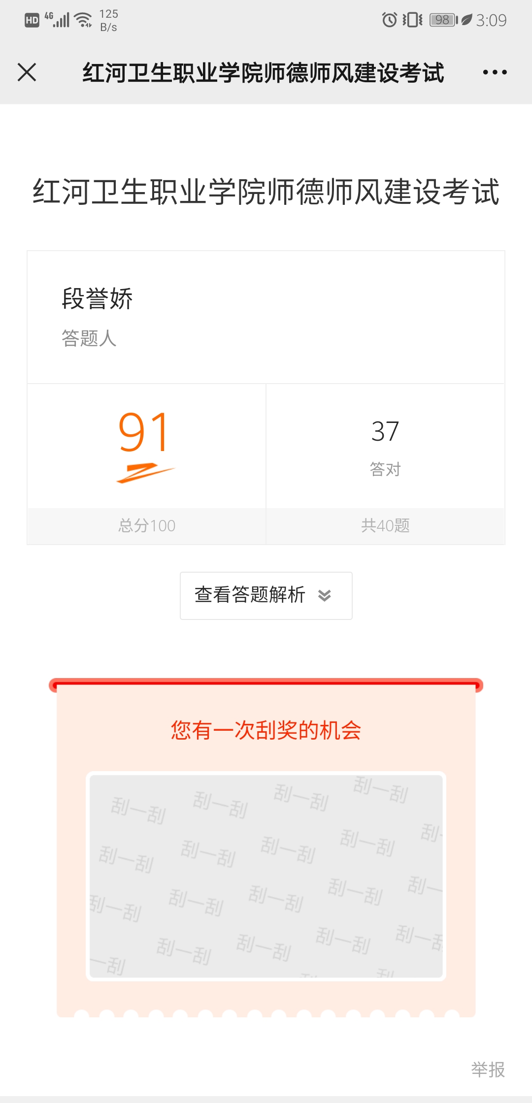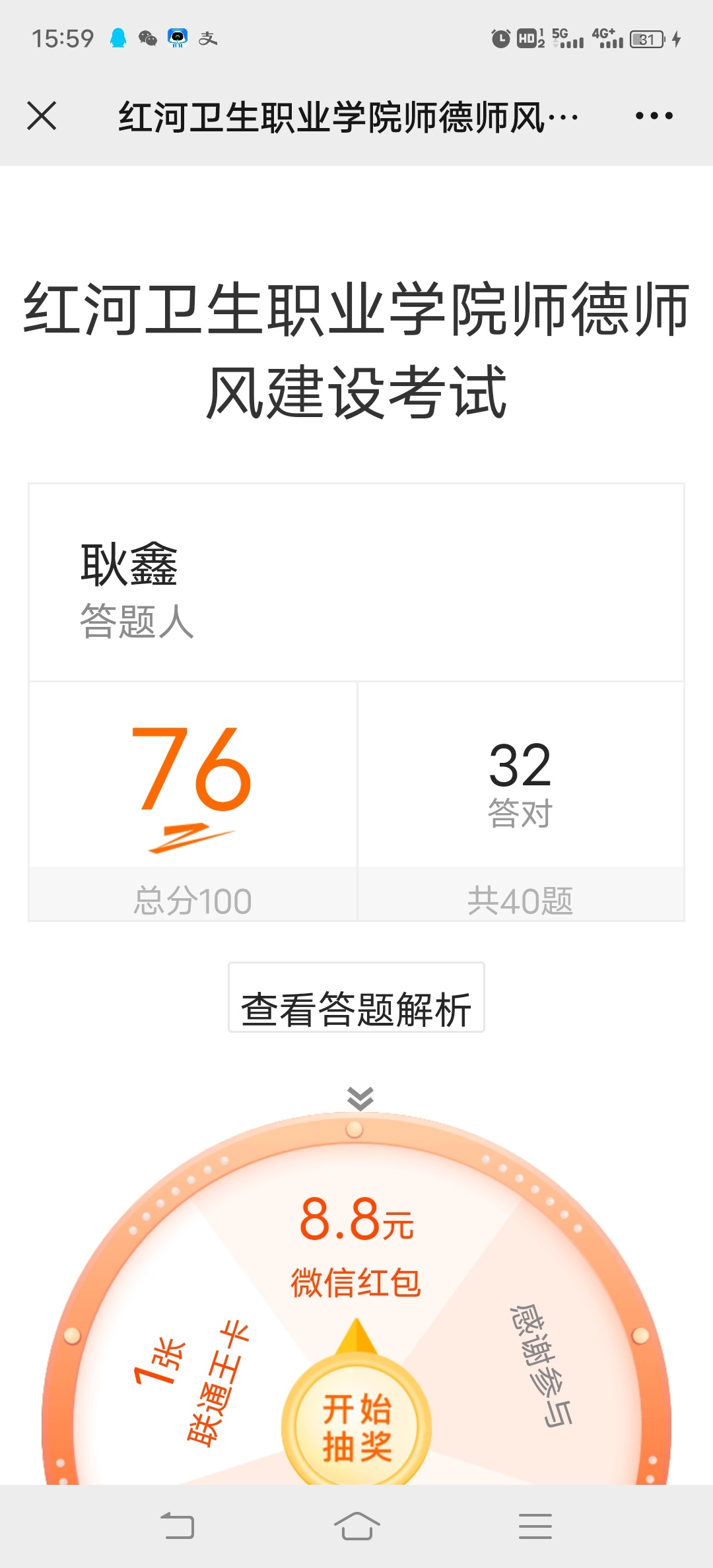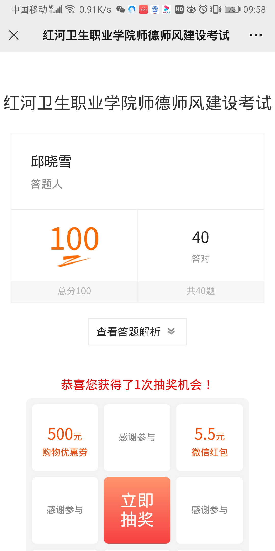 红河卫生职业学院2021年各部门师德师风在线考试分数汇总表