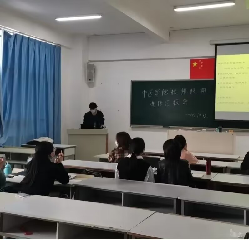 2022年10月13日下午15:30,中医学院在教学楼南306举行了教师假期学习分享交流会,参加人员为中医教研室、针推教研室、医美教研室全体专业教师。