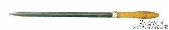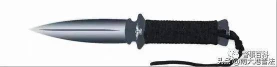 1、 匕首:带有刀柄、刀格和血槽,刀尖角度小于60度刀身长度超过150毫米的单刃、双刃或多刃尖刀(见图一)