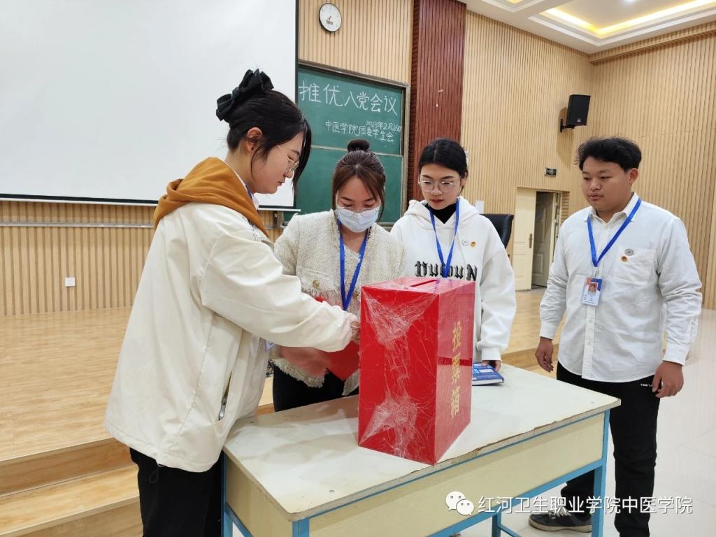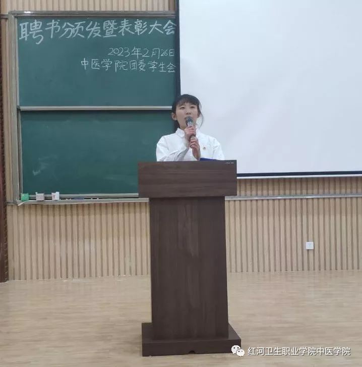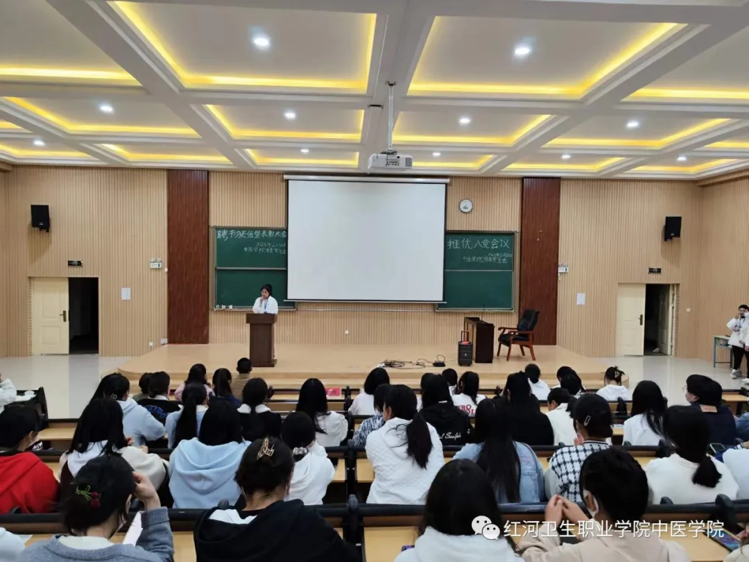 为加强党员队伍建设,充实党的新生力量,推荐优秀团员作为党的发展对象,积极贯彻落实党组织交付的任务,同时也为鼓励先进有为的优秀团委、学生会干部及成员,以树立典型、凝聚人心、鼓舞士气为目的,红河卫生职业学院中医学院于2023年2月26日在形态楼阶梯教室召开了推优入党暨表彰大会,参与此次会议的人员有中医学院总辅导员董超及团委学生会干部和成员。
