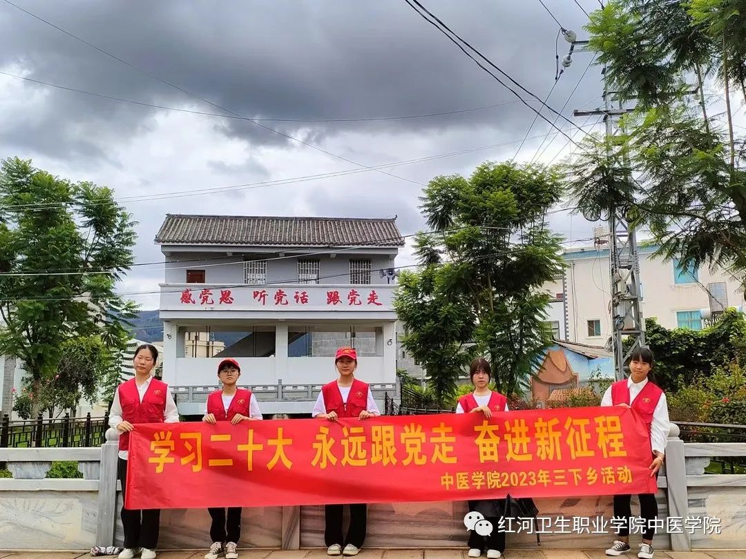 为热烈庆祝中国共产党成立102周年,结合2023年“三下乡”活动,中医学院开展“七一”庆祝活动暨中医学院“三下乡”活动。并于2023年7月1日正式开展了活动。此次活动参与人员有红河卫生职业学院中医学院院长王丕琦,中医学院教师党支部副书记龙学云,中医学院中医教研室主任王芸芝,中医学院辅导员董超、邱晓雪、谢亚衡以及26名学生代表。