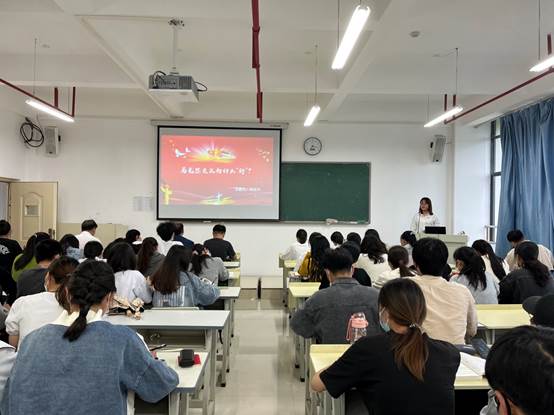 学习开始,由两名学生代表领学《中国共产党章程》第一章至第三章,马克思主义学院教师陈妍卉以《马克思主义为什么“行”》为题,联系学生实际,讲明了三大问题:马克思主义理论是关于什么的理论?历史和人民为什么选择马克思主义?在当代,为什么在马克思主义的指导下,中国越来越好?马克思主义为什么行?她还结合接种疫苗、屏边县湾塘乡的脱贫攻坚成效、习近平总书记考察云南等事例讲解了马克思主义为什么行。