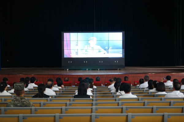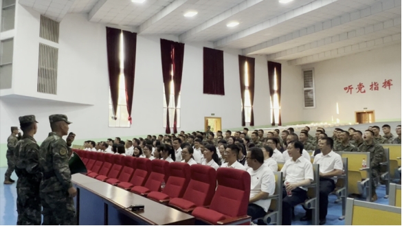 随后,全体教师在大礼堂集中观看了情景剧《家书》,此剧以战斗英雄谢国华写给母亲的信为脉络,将谢国华入伍、训练、生活、参战、牺牲等情节串联其中,展示该支队前身英模先烈的光辉感人事迹。当讲到谢国华家书中写到“妈妈,如果我在战斗中牺牲的话,请你不要难过,父亲也当过兵,我又是军人,我们家是两代军人家庭。再说,您有三个儿子,献上一个给国家也是应该的!”在场的教师们深受触动。