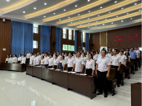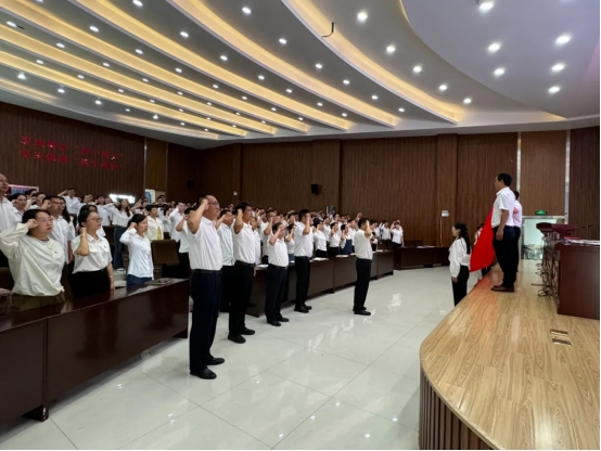 在党委书记王必成同志的带领下,全体党员重温入党誓词。“我志愿加入中国共产党,拥护党的纲领,遵守党的章程,履行党的义务……”党员们在铮铮誓言中感悟中国共产党人的信仰和为民奉献的初心,铿锵有力的宣誓声久久回荡。