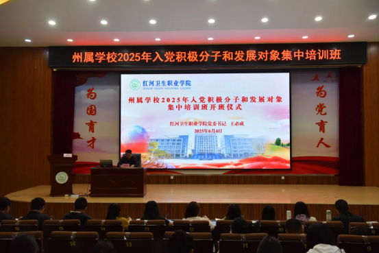 为严格规范党员发展流程、夯实教育系统党建基础,2025年6月4日至6月6日,由中共红河州委教育工作委员会主办、中共红河卫生职业学院委员会党校承办的州属学校 2025 年入党积极分子和发展对象集中培训班在红河卫生职业学院博闻报告厅圆满结束。来自各州属学校的 200 余名参训学员,通过党性教育与理论淬炼,为加入党组织筑牢思想根基。